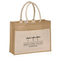 Carry your essentials in eco-friendly style with our Front Pocket Jute Tote Bags. Crafted from durable jute fiber and 8 oz canvas, these totes combine natural texture with reliable strength. The spacious canvas front pocket features a secure Velcro closure—perfect for quick-access items. Sturdy 20" webbed handles make for comfortable carrying, whether you’re headed to the market, the beach, or a casual outing.