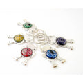 Recycled circuit board was cut into a circle and nestled under a layer of clear resin, forming a beautiful protective cover. The robot is 2 1/4" (5.5cm) tall and is attached to a sturdy key ring. If you flip the keychain over, the backside features a dimensional robot character.