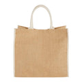 Carry your favorite essentials in style with the spacious yet lightweight Large Jute Tote, the perfect bag for transporting books, clothing, snacks, electronics, and more. It features an open main compartment and double 17" handles that make this jute bag easy to carry anywhere. Its spacious surface is perfect for decorating with your logo, subject to certain restrictions due to the nature of the material.